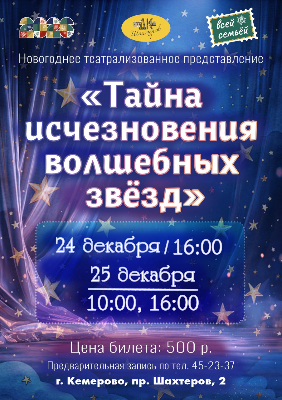 ДК шахтеров приглашает новогоднее представление «Тайна исчезновения волшебных звёзд»